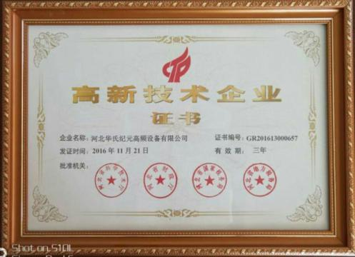 河北华氏纪元高频设备有限公司位于河北廊坊市大厂县潮白河工业区,西邻北京通州城市副中心。本公司成立于2009年,是以研发、生产、推广射频技术工业化应用为主要目的的公司,是省级高新技术企业。本公司目前主要生产三类射频设备:一类是用于肉类、水产品、果蔬、果浆、奶制品等冻品的射频解冻设备;一类是用于食品、粮食、干果等快速干燥、杀虫、灭菌工艺的射频设备;一类是用于高等院校和科研院所实验室的射频加热设备。本公司拥有9项的专利技术,其中2项为发明专利。公司拥有一支过硬的研发团队。2018年当选为中国肉类协会第六届理事单位,并在当年举办的第三届国际肉类产业周上射频解冻设备成为最受关注的食品加工机械装备。华氏纪元追求的目标就是让射频技术广泛应用于工业生产,为工业企业保质增效和大专院校的科研创新提供服务。做射频加热设备的全球供应商”